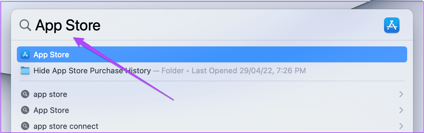 Step 1: Press Command + Spacebar to open Spotlight Search, type App Store, and press Return.