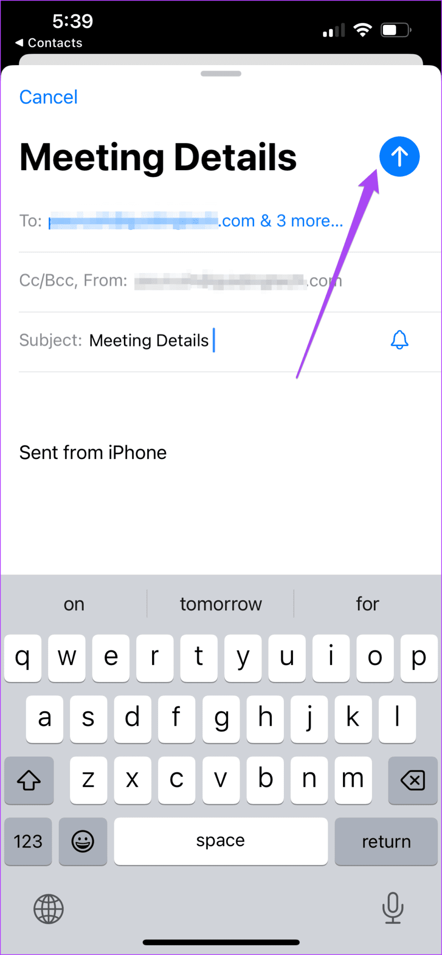 Step 4: Compose your email and tap the blue arrow to send it.