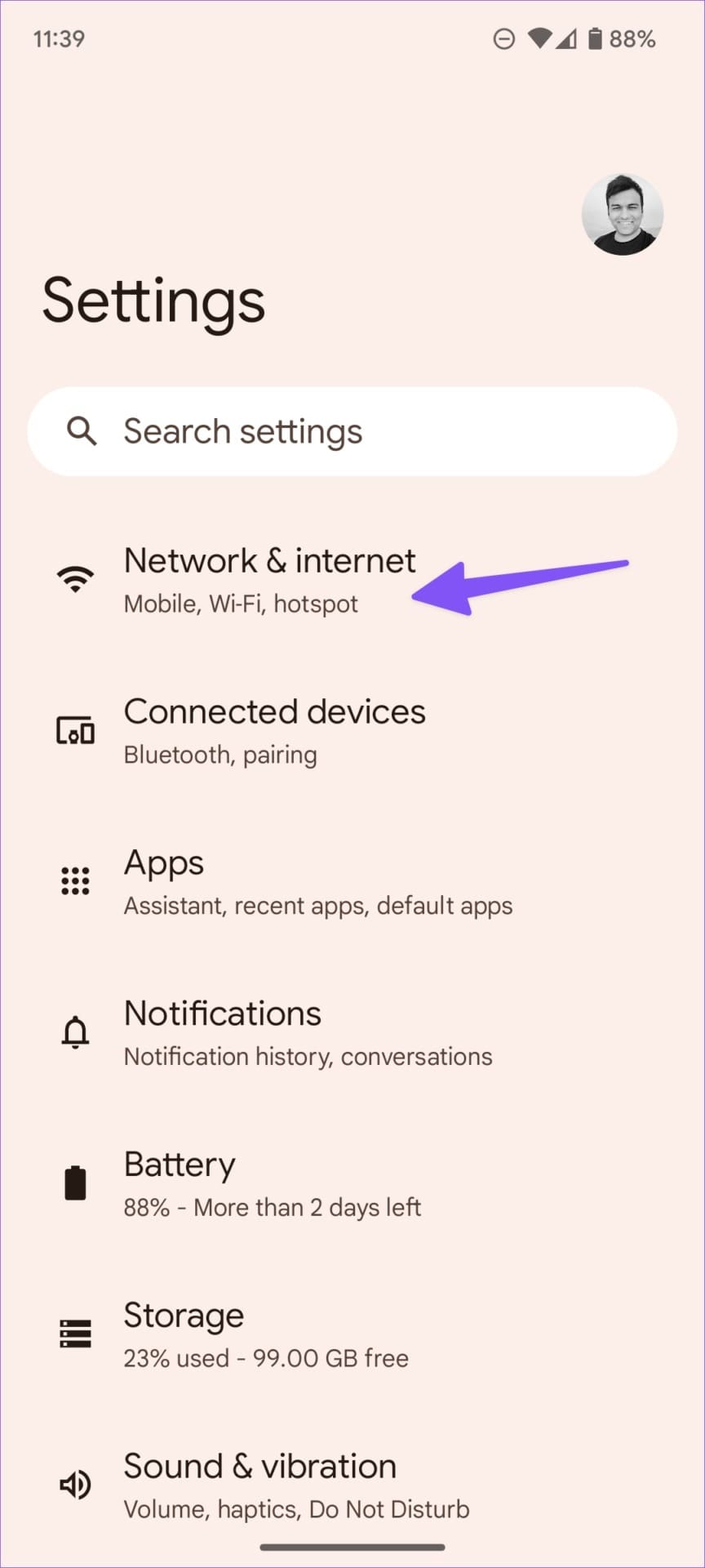Step 3: Select Network & internet.