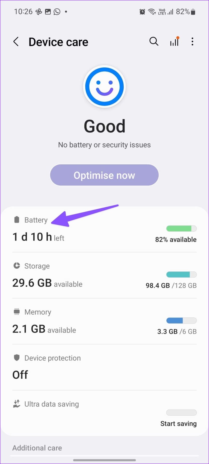 Step 1: Open ‘Battery and device care’ in Settings app on your Galaxy phone (check the steps above).