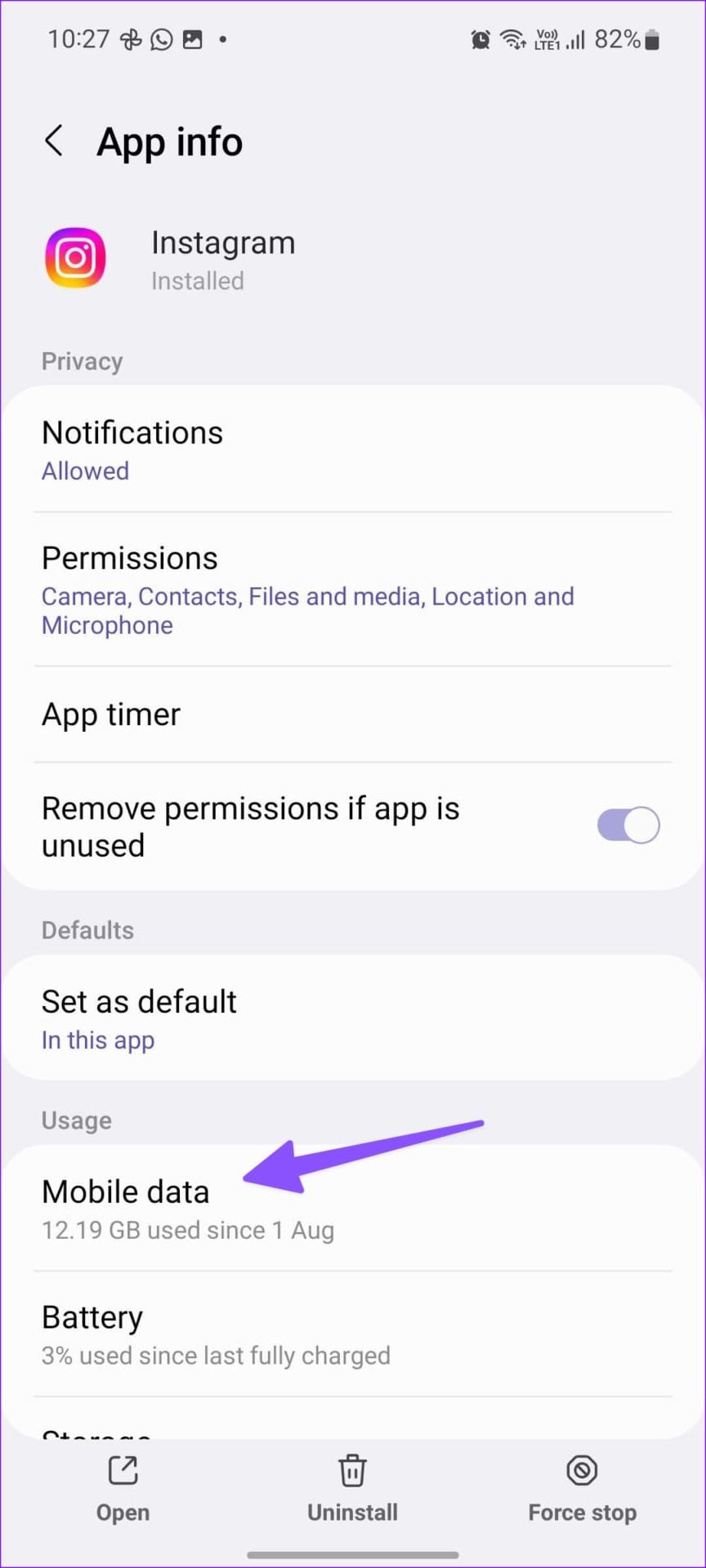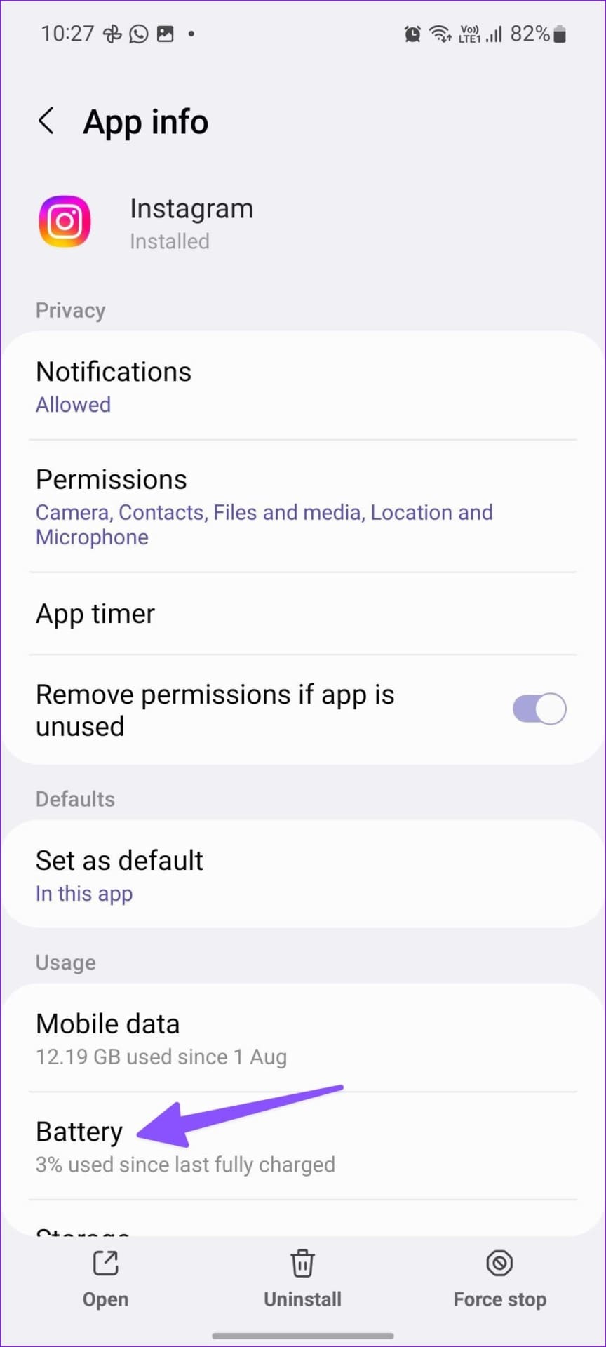 For example, if you frequently face delays in Instagram notifications, use the steps below to give it unrestricted access.