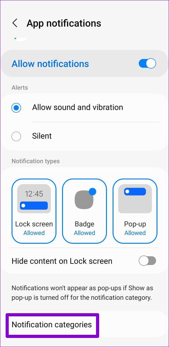 Step 2: Go to Notifications and enable the toggle for Allow Notifications.