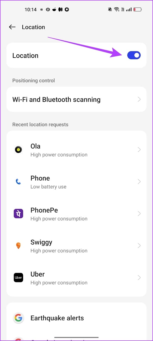 Step 3: Turn on the toggle for location.