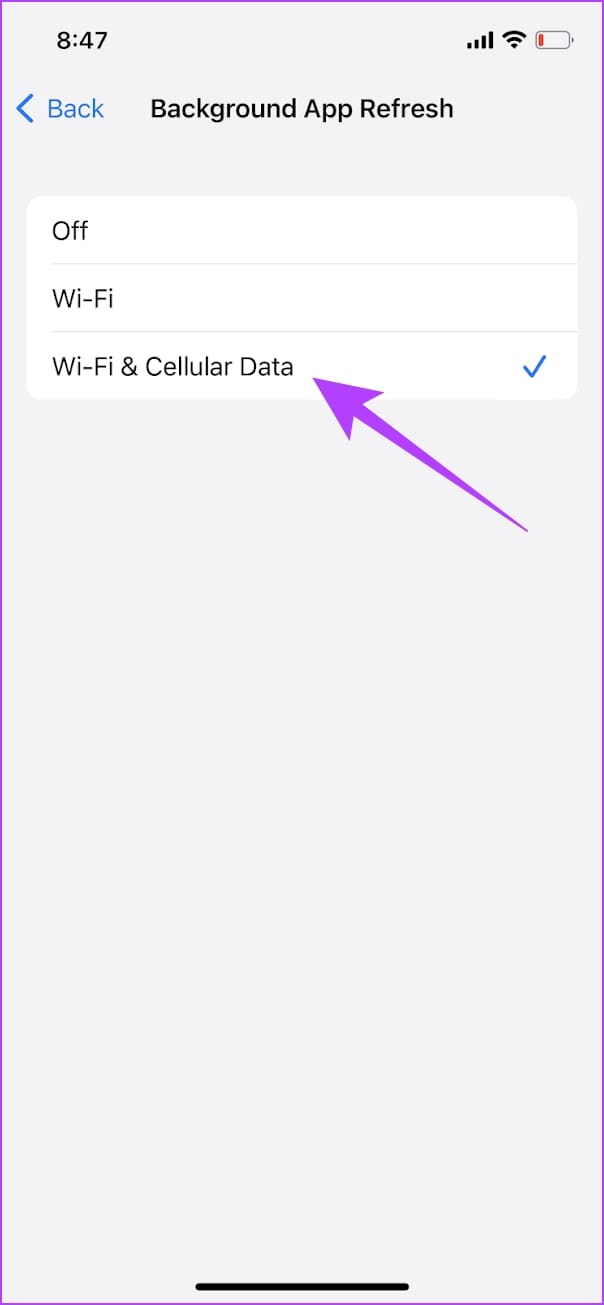 Step 5: Tap on ‘Wi-Fi and Cellular Data’ to allow apps to refresh on all forms of network connectivity.