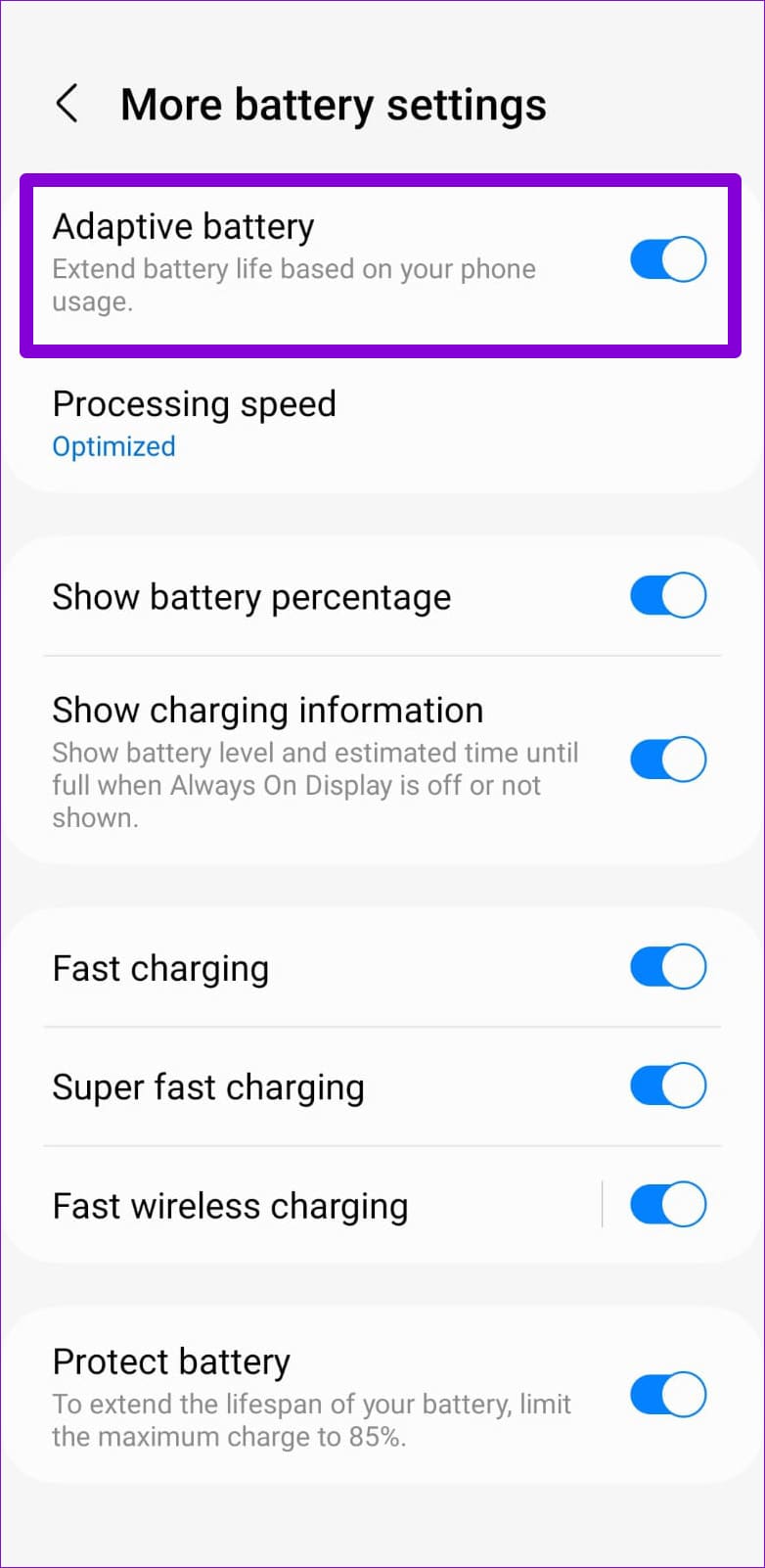 3. Disable Adaptive Battery