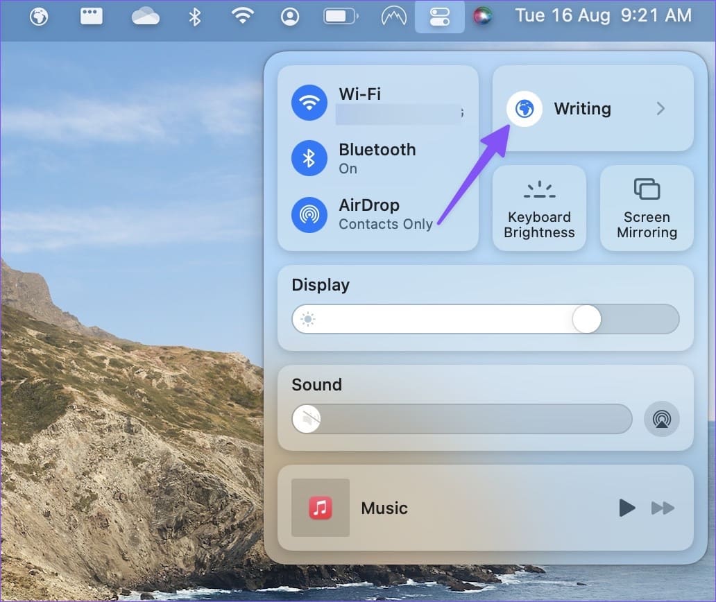 Step 1: Select Mac Control Center in the top-right corner.