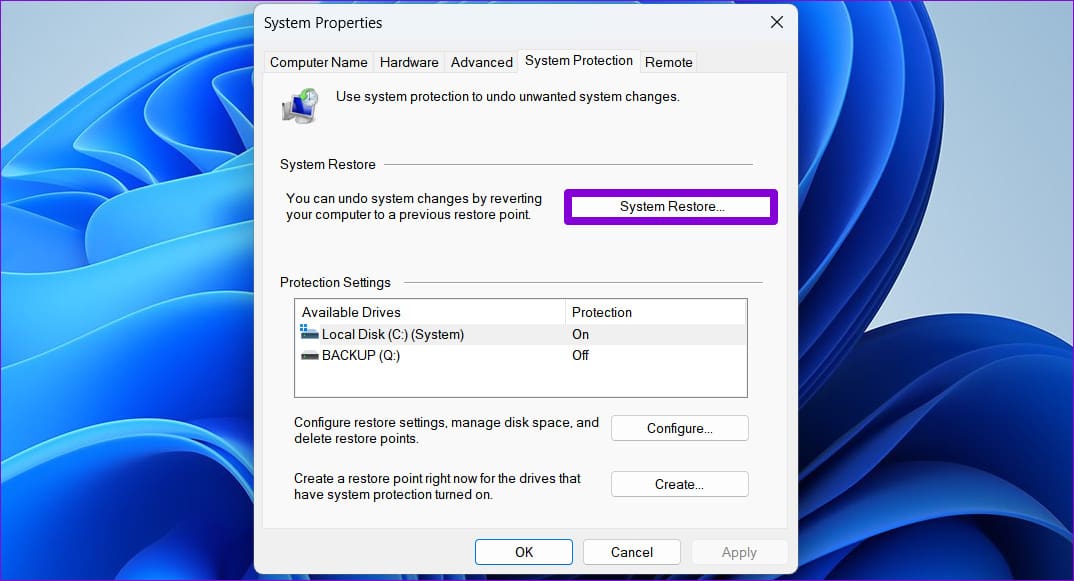 Step 1: Open the search menu, type in create a restore point, and press Enter.