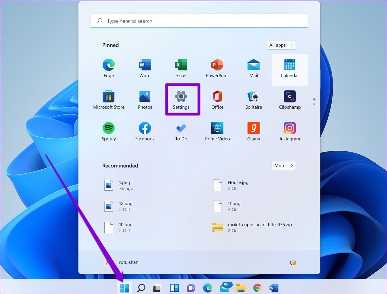 Step 1: Open the Start menu and click the gear-shaped icon to launch the Settings app.