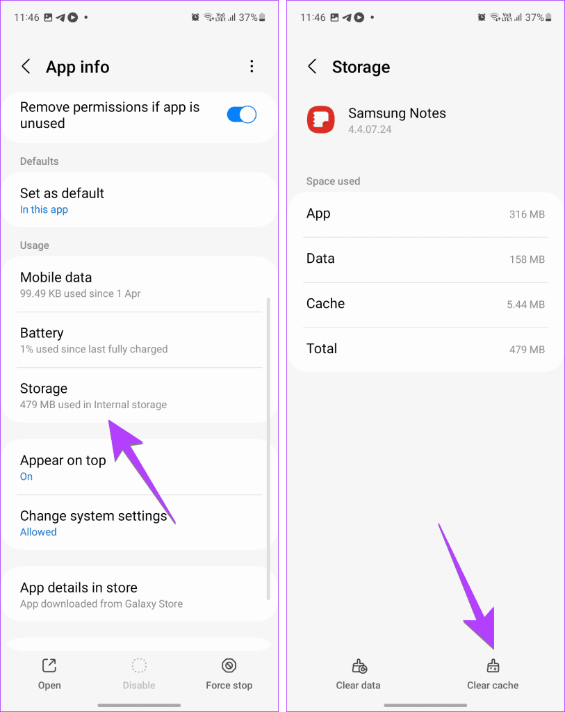 You should also try clearing cache for the Samsung Notes app. Doing so will not delete your notes or any other personal files. But will help in solving the issue of Samsung Notes won’t open or keeps crashing.