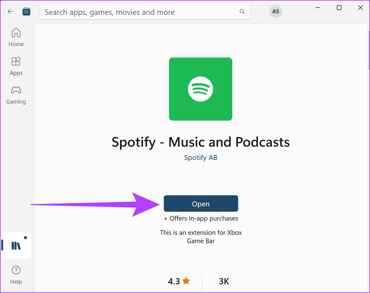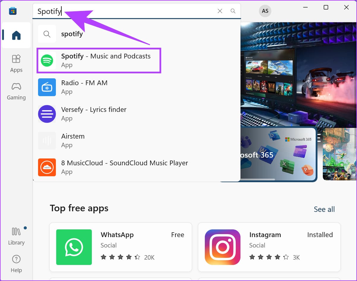 Step 2: In the search bar, type Spotify. Then, open the app from the results.