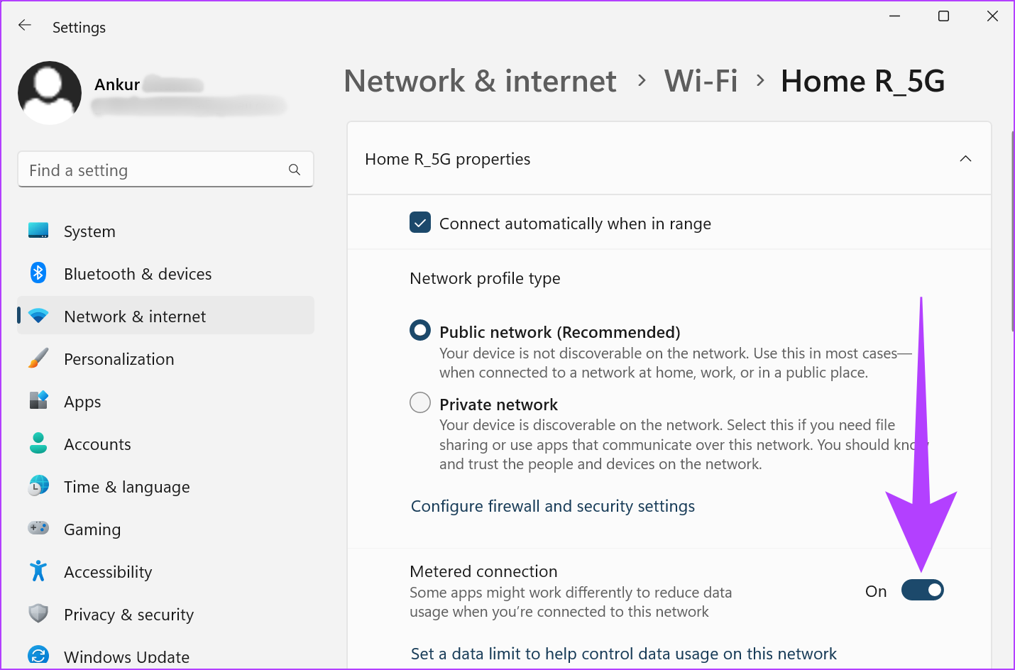 Step 4: Scroll down and turn the toggle off for Metered connection.
