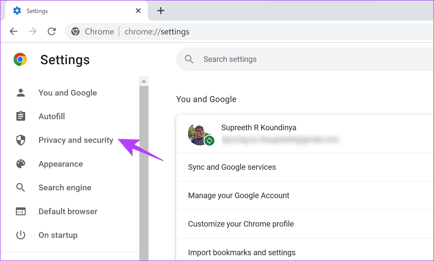 Step 2: Select Privacy and security on the left pane and open Site settings.