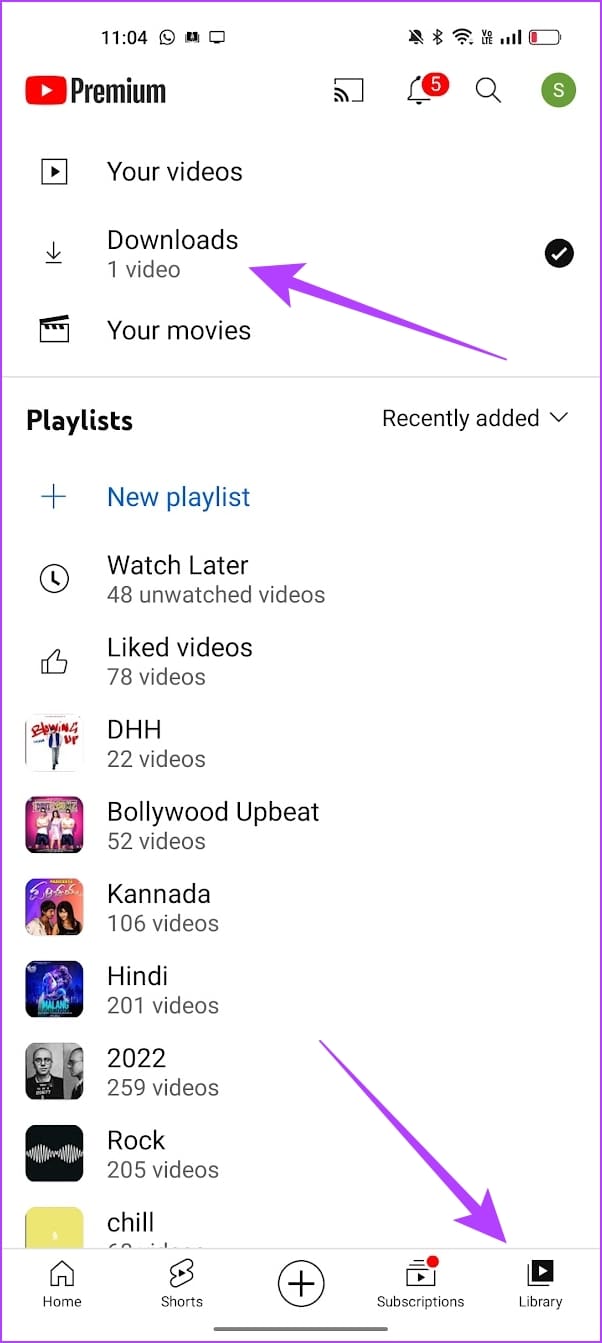 Step 2: Tap on Library and select Downloads to check if the video is downloaded.