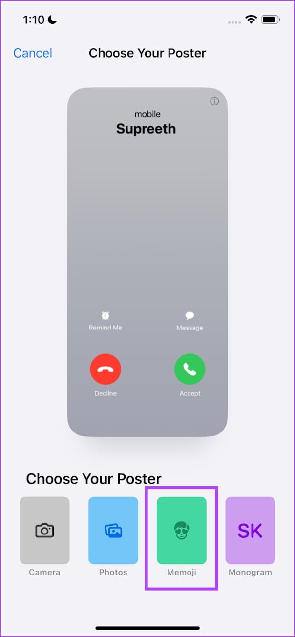 You can also create a Contact Poster on iOS 17 using Memojis. You can select the Memoji option while creating the poster and select a Memoji of your choice.