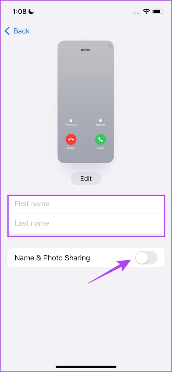 Step 4: Turn on the toggle for ‘Name & Photo Sharing’.