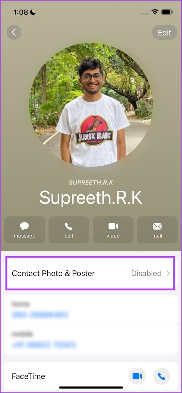 Step 2: Select the contact you want to add a poster to and tap on Edit.