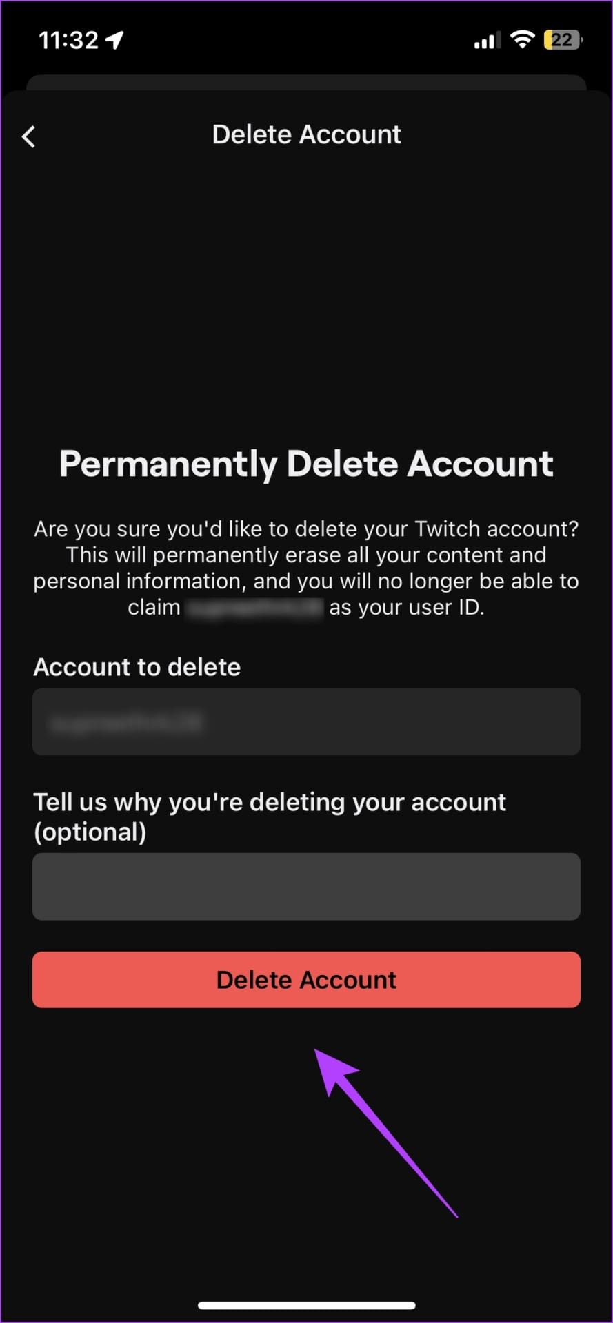 Permanently Delete Twitch Account on iPhone and Android App