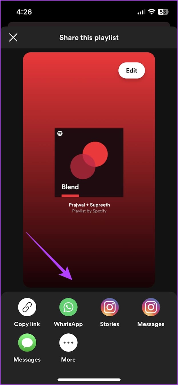 Step 3: You will now get a list of options to share the Blend playlist.