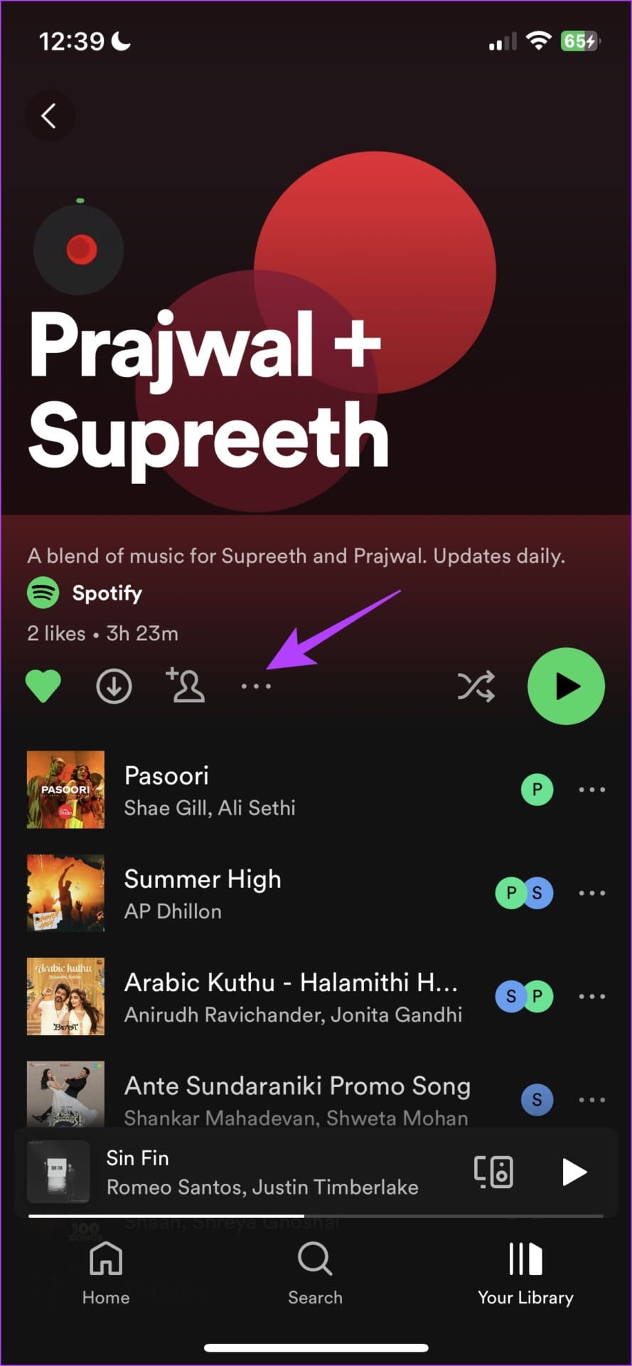 Step 1: Open the Blend Playlist on Spotify and tap on the three dots icon.