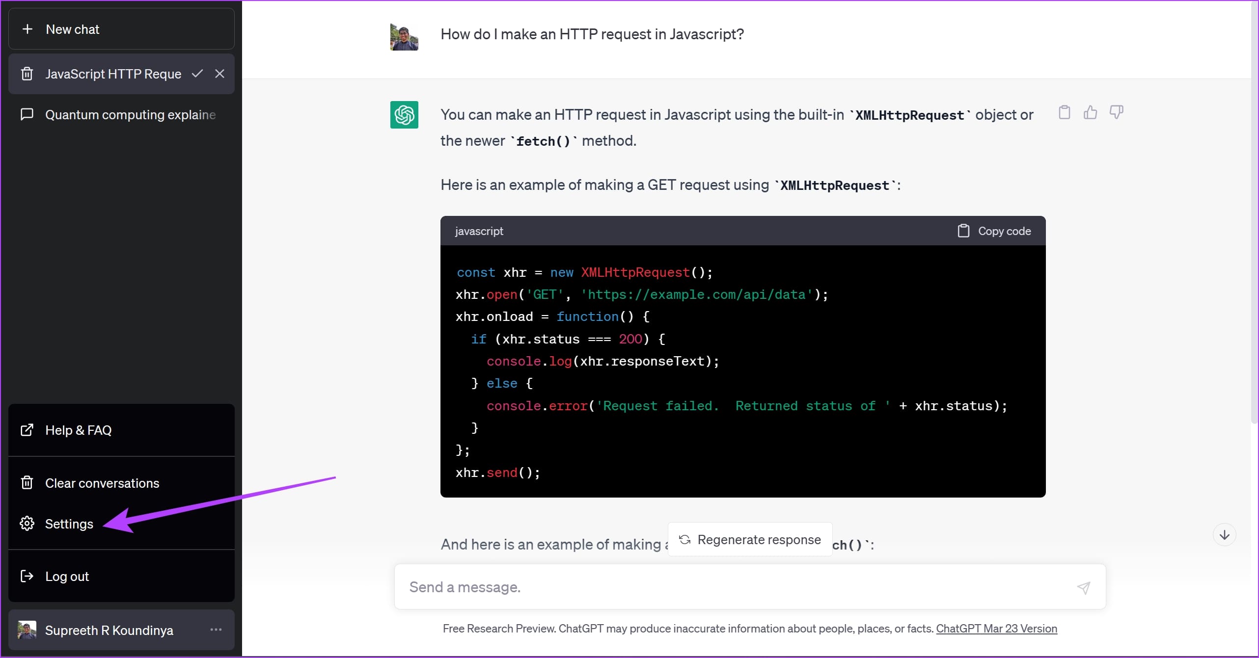 That is how to delete the conversation history on ChatGPT. But if you want to delete your entire chat history in one go, here’s how to do it.