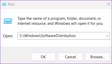 Step 2: Type C:\Windows\SoftwareDistribution in the Open field and press Enter.