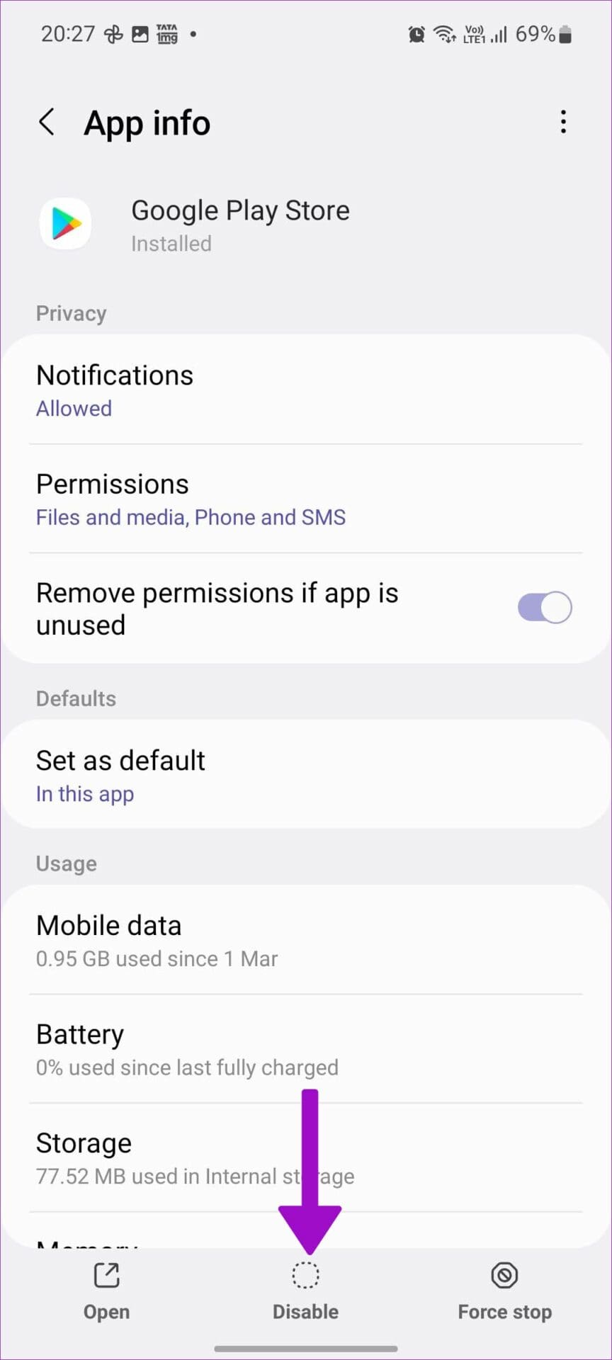 Step 1: Go to the Play Store info menu (check the steps above).