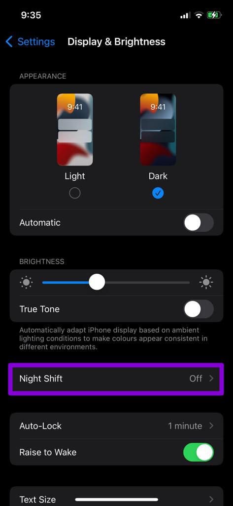 Similar to Screen Zoom, the Night Shift feature is also known to interfere with the auto-brightness feature at times. If you’ve been using this feature to reduce the blue light coming from your iPhone, consider disabling it by following the steps below.