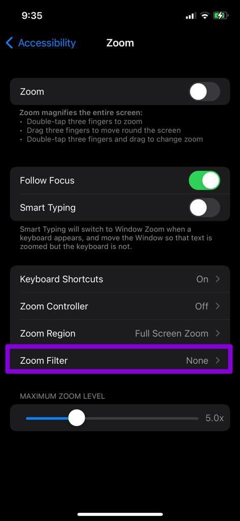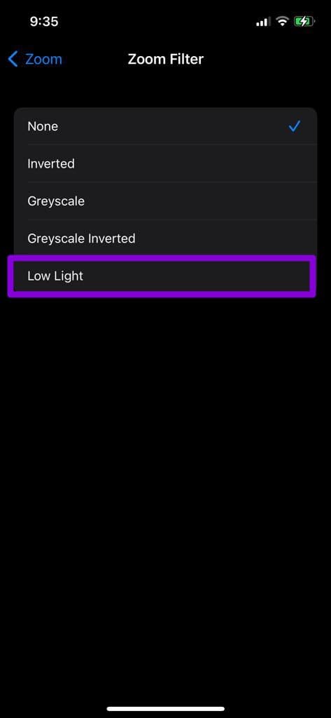Step 2: Tap on Zoom Filter and ensure it isn’t set to Low Light.